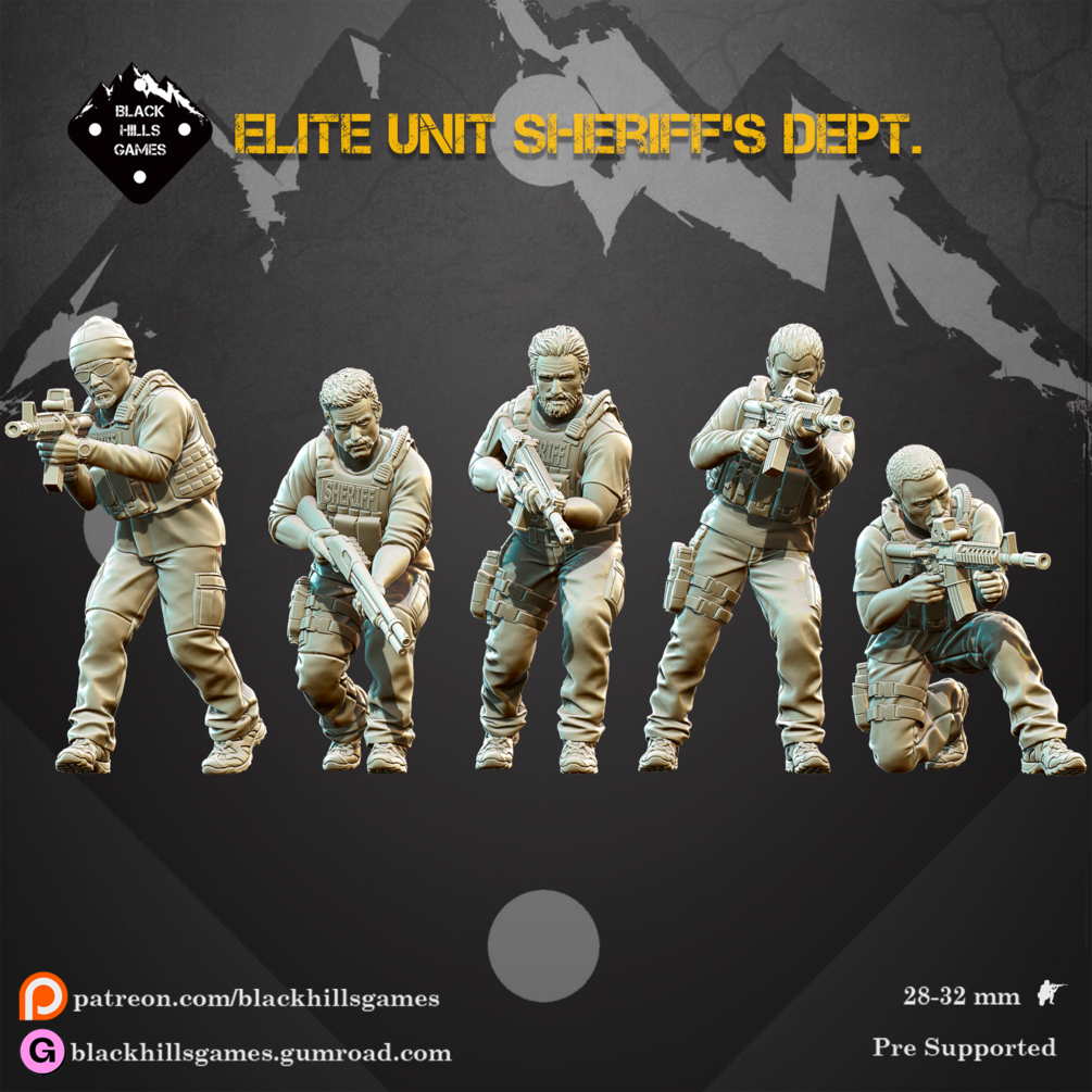 In this set you will find 5 models Elite Unit Sheriff's Dept, with M4 and SCAR assault rifles.