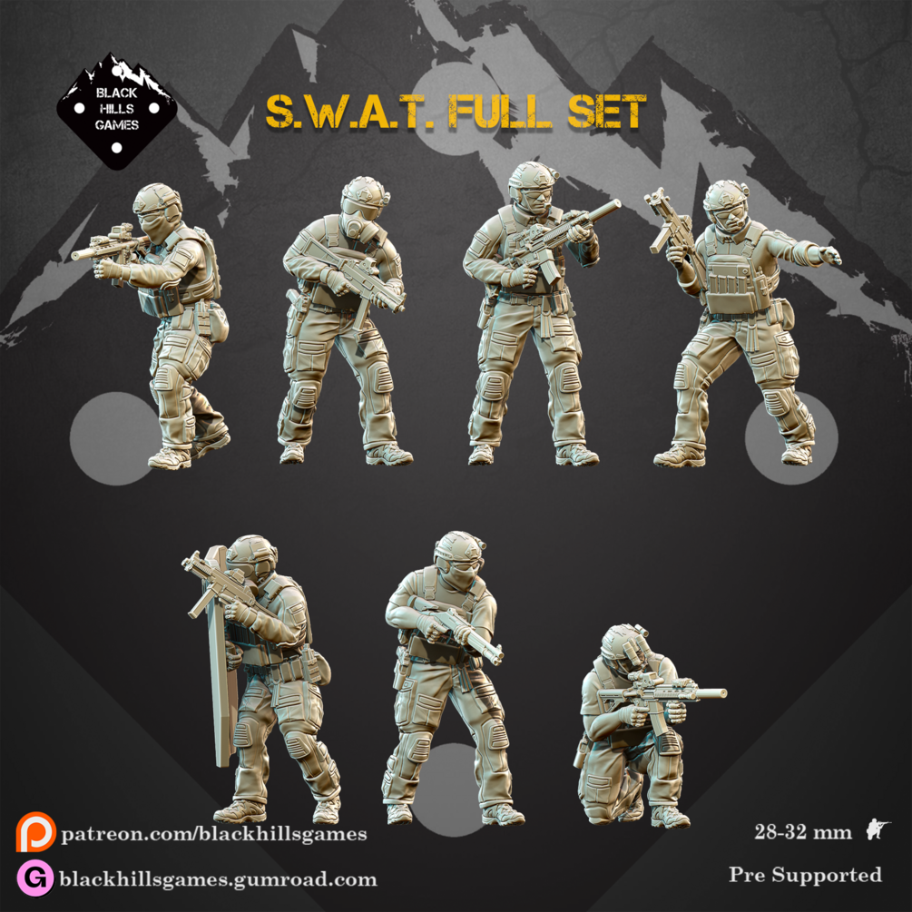 In this set you will find 7 models SWAT, with HK416 assault rifles, UMP-45 SMG and Benelli M4 shotgun.